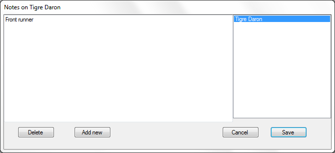 The Horse Notes feature allows you to make notes so that next time the horse runs there will be reminder and you will be able to see what you previously noted about it.